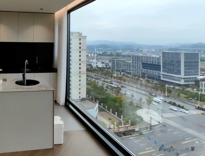 传统的封窗户都要连接多块玻璃才行,而超大落地窗则是直接采用了一整块的落地玻璃。